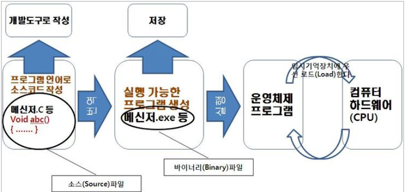 과정구조 : [ 고급언어 --> (변환) --> 기계어 ]