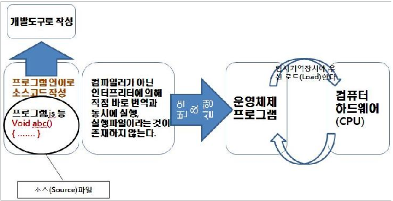 인터프리터 언어 : 스크립트 언어가 대표적이다